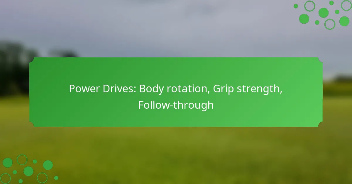 Power drives in sports rely heavily on three key components: body rotation, grip strength, and follow-through. Body rotation enhances force production through coordinated torso twisting, while grip strength provides the necessary control and stability for effective movement execution. Additionally, a proper follow-through ensures that energy is efficiently transferred, improving performance and reducing the risk of injury.